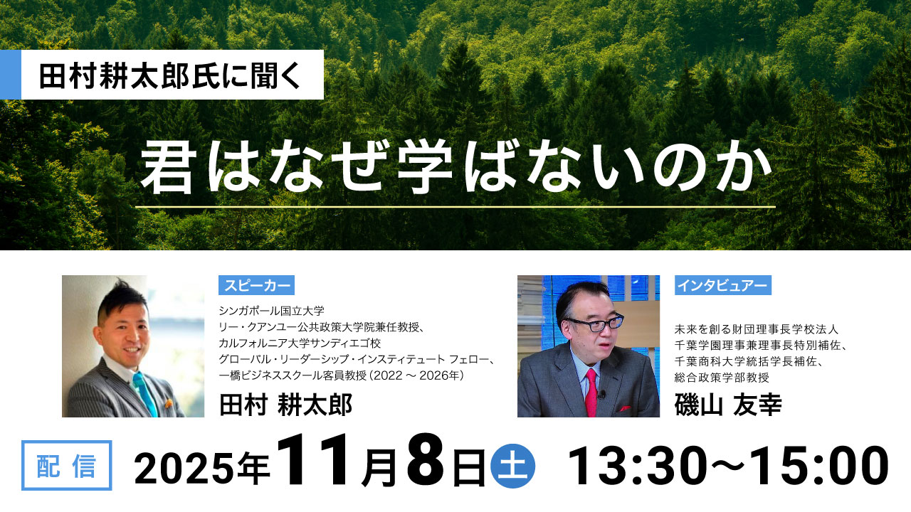 2年ぶりに田村耕太郎と磯山友幸による対談が開催決定!